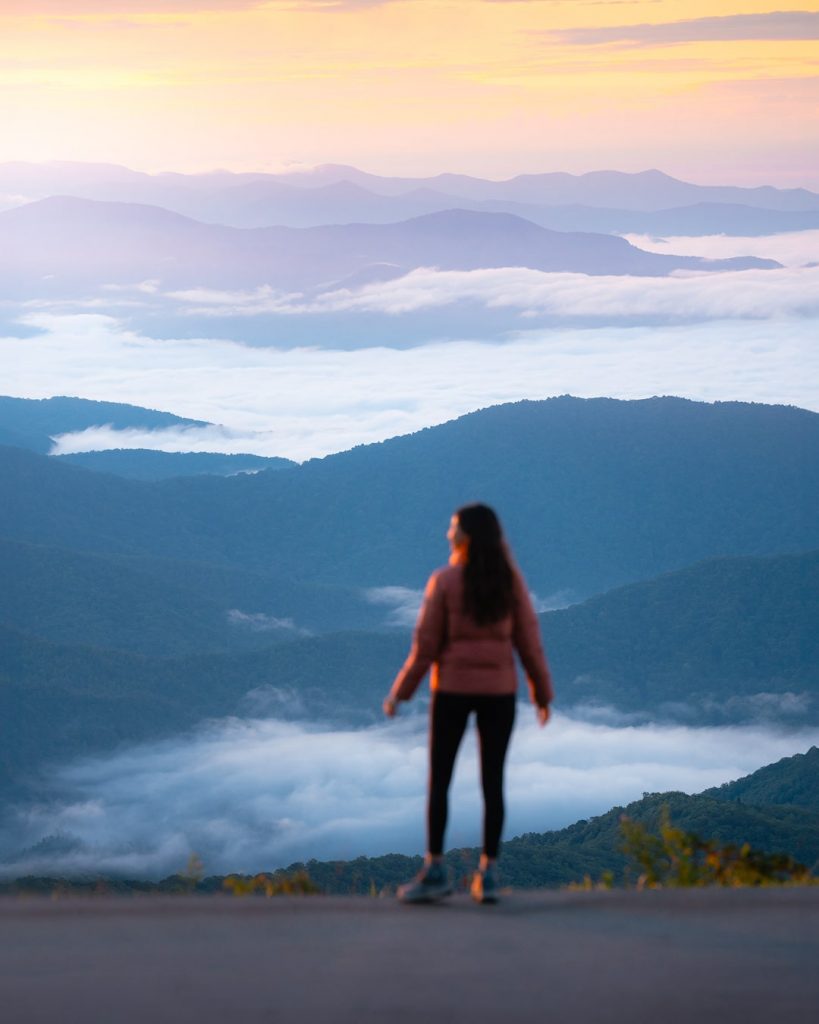 On day one, set an early alarm for sunrise at Clingmans Dome. If you’re lucky, you’ll get the chance to witness a beautiful sunrise with fewer people. If you’re unlucky, the mountains will be covered in the famous ‘smoke’ of the Smokies. Either way, it’s still a really unique experience and a great place to start your visit.